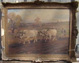 Pflugender Bauer Mit Ochsengespann