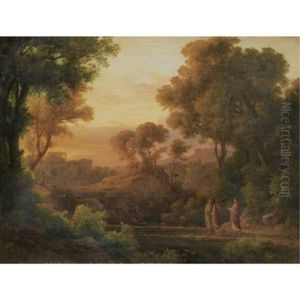 Christ With Two Disciples In A Classical Landscape
