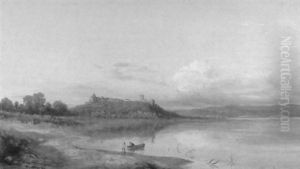 Cattle Before A Riverside Castle, Dusk