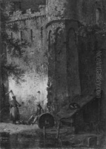 View Of A Town With Elegant Figures By A Gateway