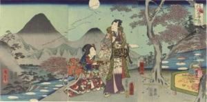 Surimono: Anba Umafubuki. Cheval D'arcons Et Bardane