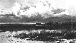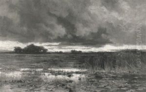 A Marshy Landscape At Dusk