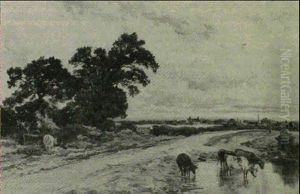 Cattle Watering Before A Village