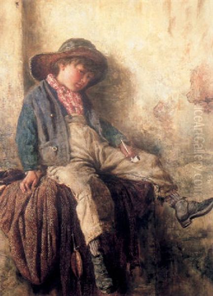 A Young Fisherboy Resting On A Net