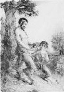 Satyre Tirant L'oreille A Un Satyre Enfant