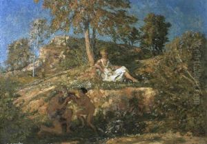 Deux Nymphes Dans Un Paysage (+ Esquisse De Paysage, Verso)