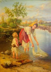 Girl Doing Laundry In A River