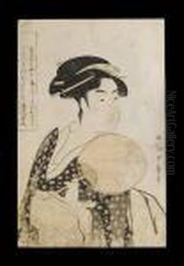 The Tea Waitress Okita Of The Naniwaya, Holding A Teacup, Signed Utamaro Hitsu , Published By Tsutaya Jusaburo, Kiwame Seal, Second State Without Cartouche, Mica Background, Colours Slightly Faded, Backed