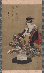 The Tea Waitress Okita Of The Naniwaya, Holding A Teacup, Signed