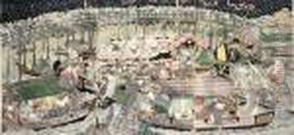 A Design Of Figures In Boats Watching Fireworks