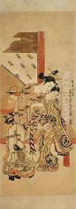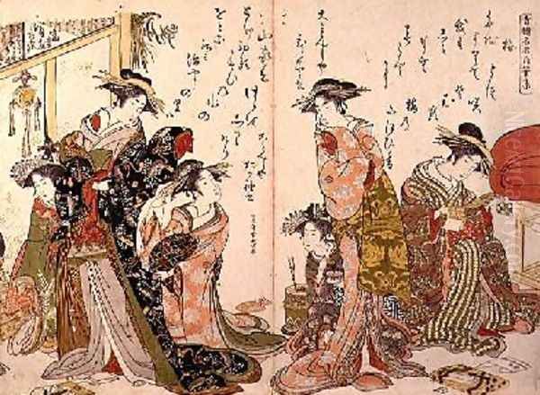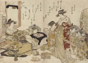 Courtesans at leisure from the Autographs of Yoshiwara Beauties 1780