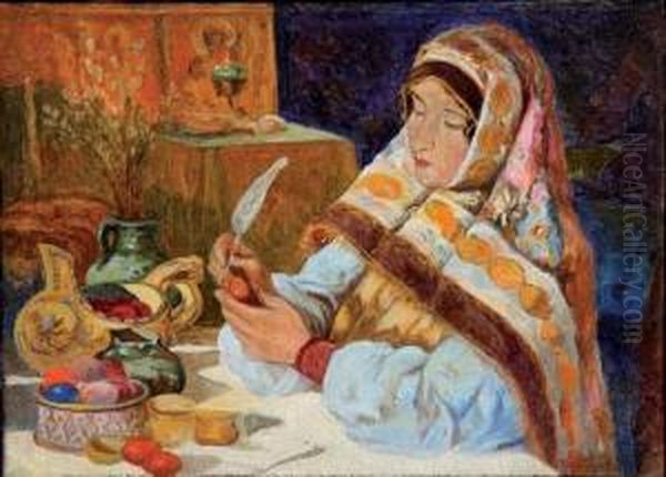 Bring the timeless beauty of Klavdiy Vasilievich Lebedev's Jeune Fille Decorant Des Oeufs De Paques into your home with a handmade oil painting reproduction. Carefully recreated on canvas by skilled artists using traditional techniques, this piece captures the delicate brushwork, subtle light, and vibrant color of the original masterpiece. With museum-level quality and rich texture, it brings elegance and artistic depth to any space. Enjoy free shipping and make this masterpiece a part of your personal collection.