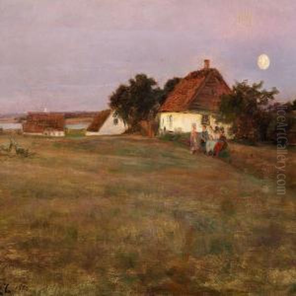 Children In A Field On A Summer Evening At Full Moon