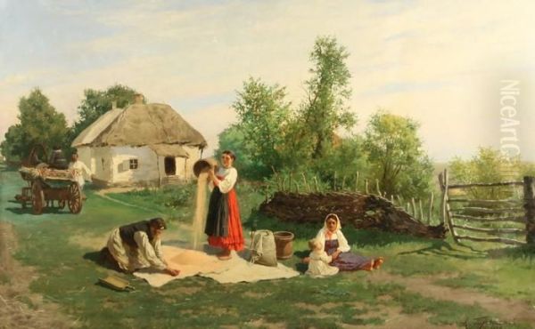 Bring the timeless beauty of Konstantin Aleksandrovich Trutovskii's Summer In The Village into your home with a handmade oil painting reproduction. Carefully recreated on canvas by skilled artists using traditional techniques, this piece captures the delicate brushwork, subtle light, and vibrant color of the original masterpiece. With museum-level quality and rich texture, it brings elegance and artistic depth to any space. Enjoy free shipping and make this masterpiece a part of your personal collection.