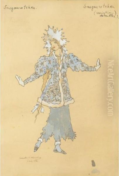 A Group Of Five Costume Designs Comprising Snegurochka And Babylichka From Snegurochka , A Tartar And Two Polovtsian Girls From Prince Igor