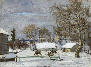 Winter Landscape Oil Painting by Konstantin Ivanovich Gorbatov