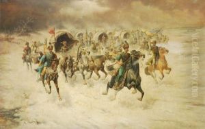 Bring the timeless beauty of Konstantin Stoilov's Charging Cossacks into your home with a handmade oil painting reproduction. Carefully recreated on canvas by skilled artists using traditional techniques, this piece captures the delicate brushwork, subtle light, and vibrant color of the original masterpiece. With museum-level quality and rich texture, it brings elegance and artistic depth to any space. Enjoy free shipping and make this masterpiece a part of your personal collection.