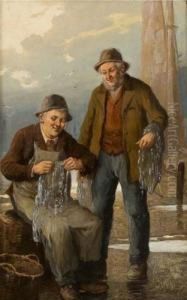 Oil On Panel,1/2 Length Portrait Of A Fisherman Smoking A Pipe, Signed, 8" X6"