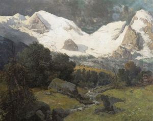 Bauerngehoft Und Muhle In Sommerlicher Alpenlandschaft