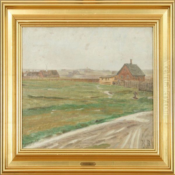 A Jutlandic Landscape With Houses. Signed K. B. 1910