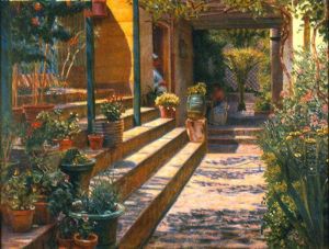 A priest in an Italian cloister.