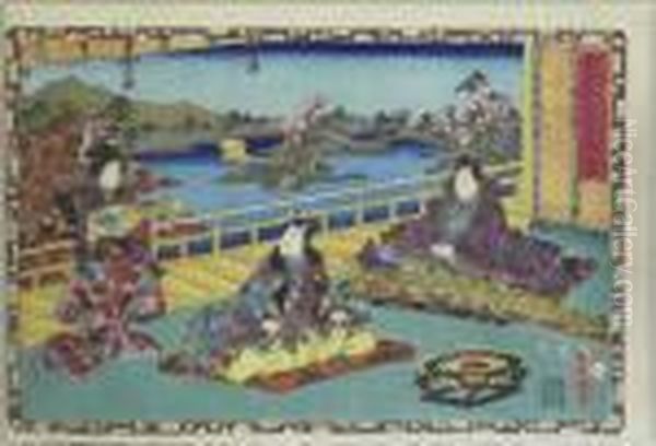 Prinz Genji Lauscht Einem Konzert Von Biwa Und Koto. Japan