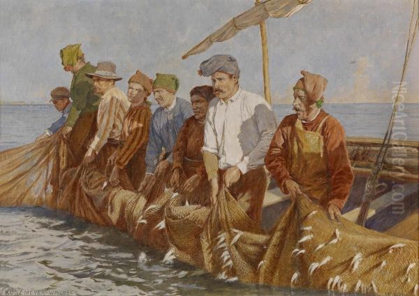 Bring the timeless beauty of Kunz Meyer-Waldeck's Fishermen Pulling In Their Catch into your home with a handmade oil painting reproduction. Carefully recreated on canvas by skilled artists using traditional techniques, this piece captures the delicate brushwork, subtle light, and vibrant color of the original masterpiece. With museum-level quality and rich texture, it brings elegance and artistic depth to any space. Enjoy free shipping and make this masterpiece a part of your personal collection.