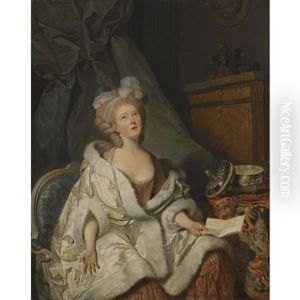 Woman Seated Reading A Letter Before An Ebonized Chinese Cabinet