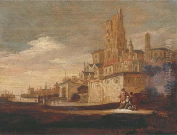 Figures Resting Outside The Walls Of A Town