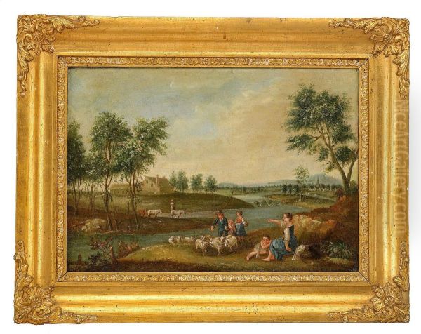 Pastorala Landskap Med Boskap Och Figurer - 2 St