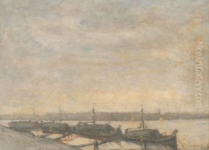 Landscape at Twilight with River and Cluster of Trees
