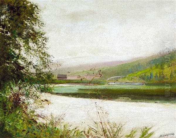 Riverside Oil Painting by Laszlo Mednyanszky