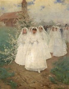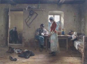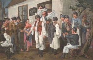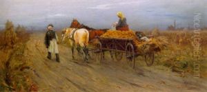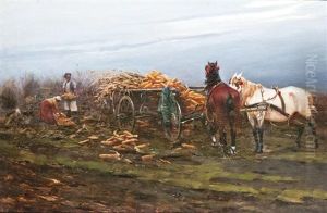 Bauernfamilie Mit Pferdefuhrwerk Auf Dem Heimweg