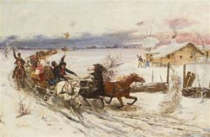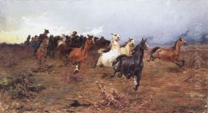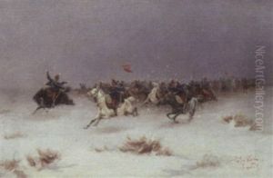 Soldiers On Horsebacks Are Watching Over The Hungarian Plain On A Winter Day