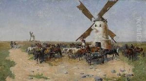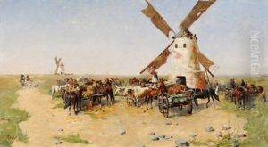 Pusztalandschaft Mit Bauern Bei Einer Windmuhle