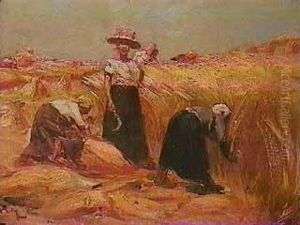 Bei Der Heuernte. Im Schatten Eines Grosen Ballens Ruhen Sich Zwei Bauerinnen Aus