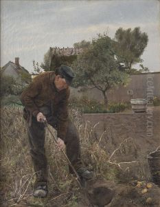 En mand som graver kartofler