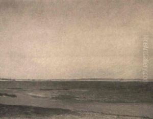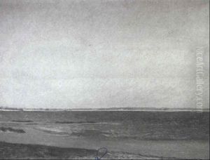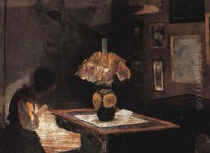 Interior I Lampelys Fra Kunstnerens Hjem, Med Kunstnerens Hustru Sigrid Ring Og Ung Pige Siddende Ved Et Bord