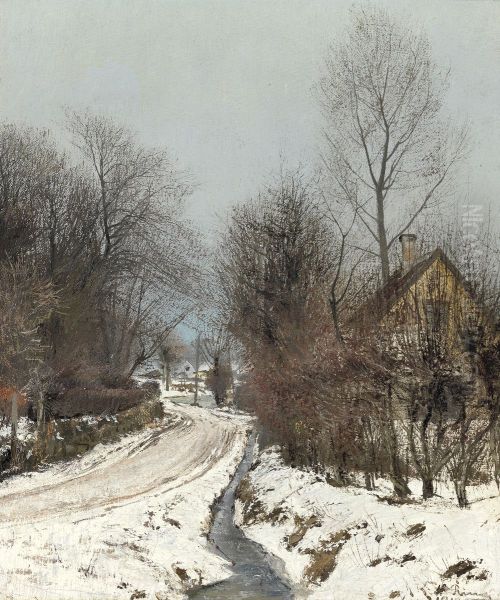 Bring the timeless beauty of Laurits Andersen Ring's Vej gennem byen. Tobrud. Baldersbronde. Til hojre en islagt groft og et spinkelt trae, der nar op omtrent til rammen. Bag dette titter en gul husgavl frem. Iovrigt traeer pa begge sider af vejen, der runder sig til venstre. Blagra luft. into your home with a handmade oil painting reproduction. Carefully recreated on canvas by skilled artists using traditional techniques, this piece captures the delicate brushwork, subtle light, and vibrant color of the original masterpiece. With museum-level quality and rich texture, it brings elegance and artistic depth to any space. Enjoy free shipping and make this masterpiece a part of your personal collection.