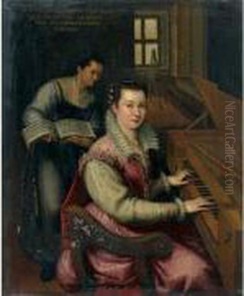 Autoportrait Au Clavicorde, Accompagnee De Sa Servante