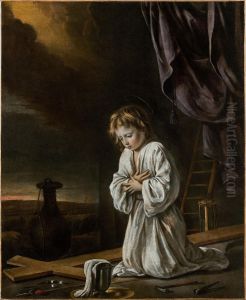 The Le Nain brothers were admitted to the Guild of Saint Germain des Prés, a testament to their skill and the esteem in which they were held by their peers. They were also founding members of the Royal Academy of Painting and Sculpture in 1648, further solidifying their importance in French art history. Their oeuvre includes religious scenes, portraits, and genre paintings, with some of their most celebrated works being 'The Peasant Family' and 'The Happy Family,' which showcase their ability to portray the simple dignity and tender humanity of peasant life. These works are characterized by their use of somber, earthy tones and a remarkable attention to detail and texture, qualities that have led to their categorization as part of the French Realism movement.