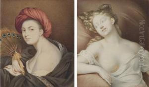 Une Femme En Buste Enturbannee Et Tenant Un Eventail; Et Une Femme Endormie, En Buste