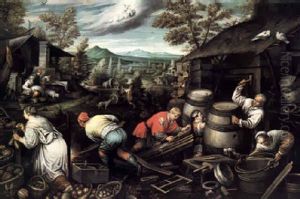 Noe E Sua Famiglia, Che Fanno L'arca Per Il Diluvio Universale