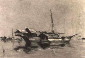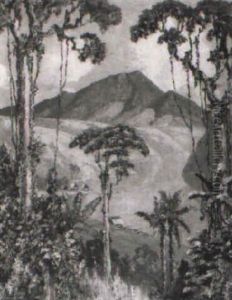 Indonesian Landscape With Figures By A Fire