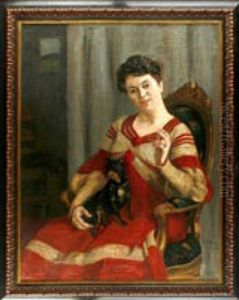 Portrait Einer Sitzenden Dame Mit Schoshund