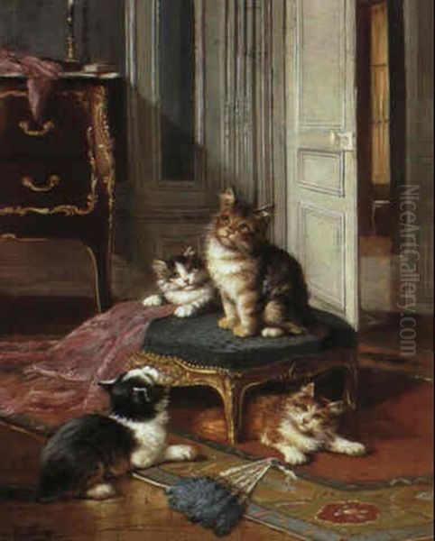Waiting To Pounce Oil Painting by Leon Charles Huber