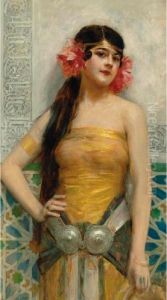 Jeune Orientale Allongee Sur Une Peau De Lion