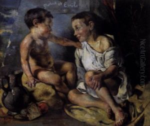 Landscape With A Roadway And Farm Buildings (+ A Mountain Landscape; 2 Works)