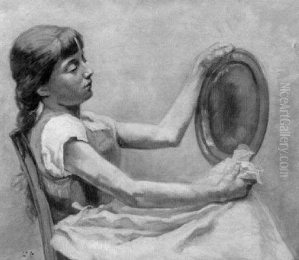 Bauernmadchen Beim Putzen Von Zinngeschirr
