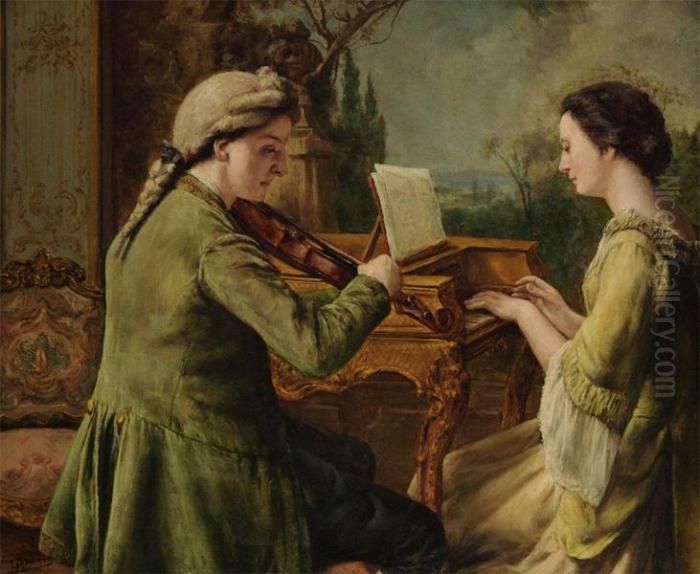 Bring the timeless beauty of Leon Meuter De Brunin's ""le Duo"" into your home with a handmade oil painting reproduction. Carefully recreated on canvas by skilled artists using traditional techniques, this piece captures the delicate brushwork, subtle light, and vibrant color of the original masterpiece. With museum-level quality and rich texture, it brings elegance and artistic depth to any space. Enjoy free shipping and make this masterpiece a part of your personal collection.